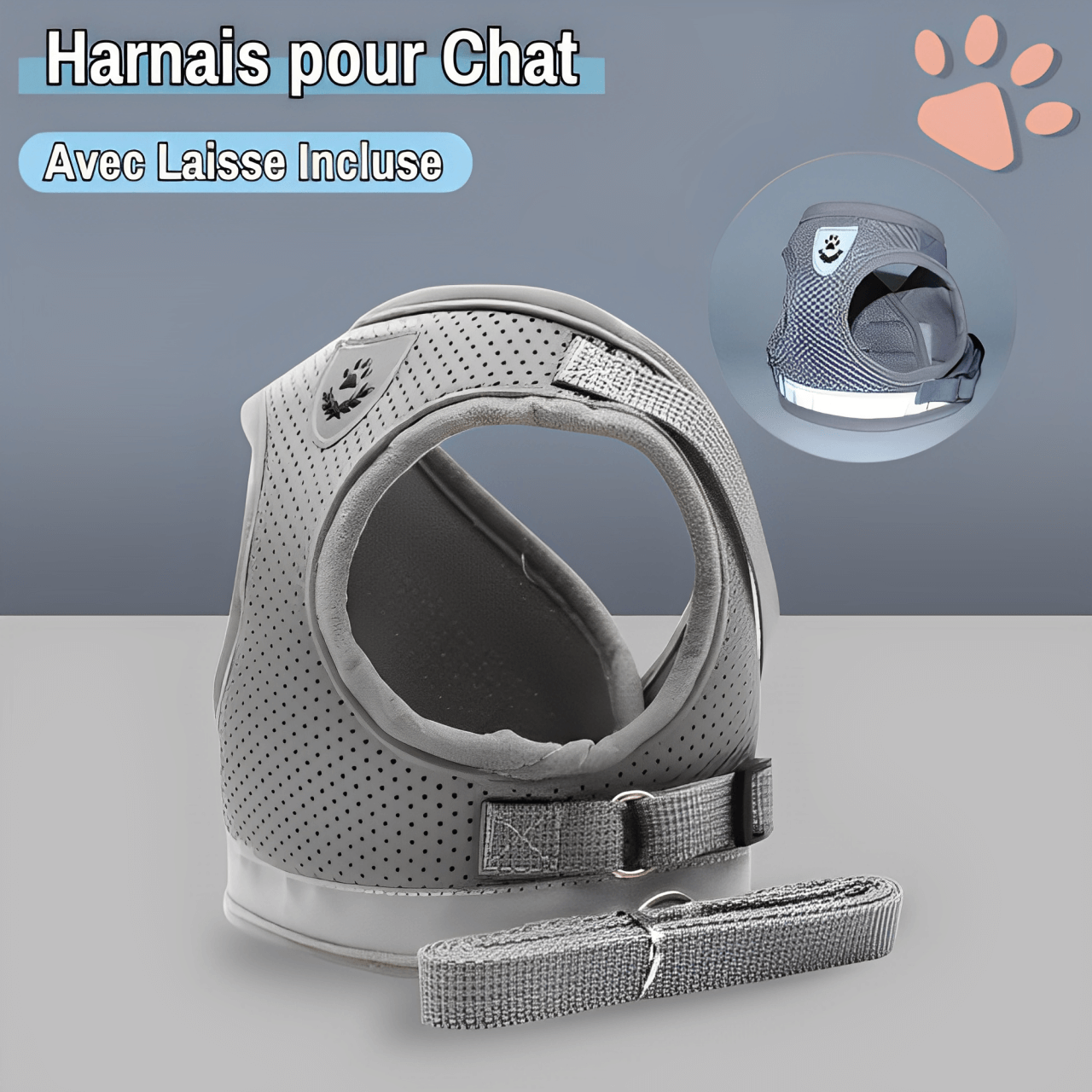 Harnais pour Chat Anti-Tranction avec Laisse OFFERTE | JuJuCatHarn™